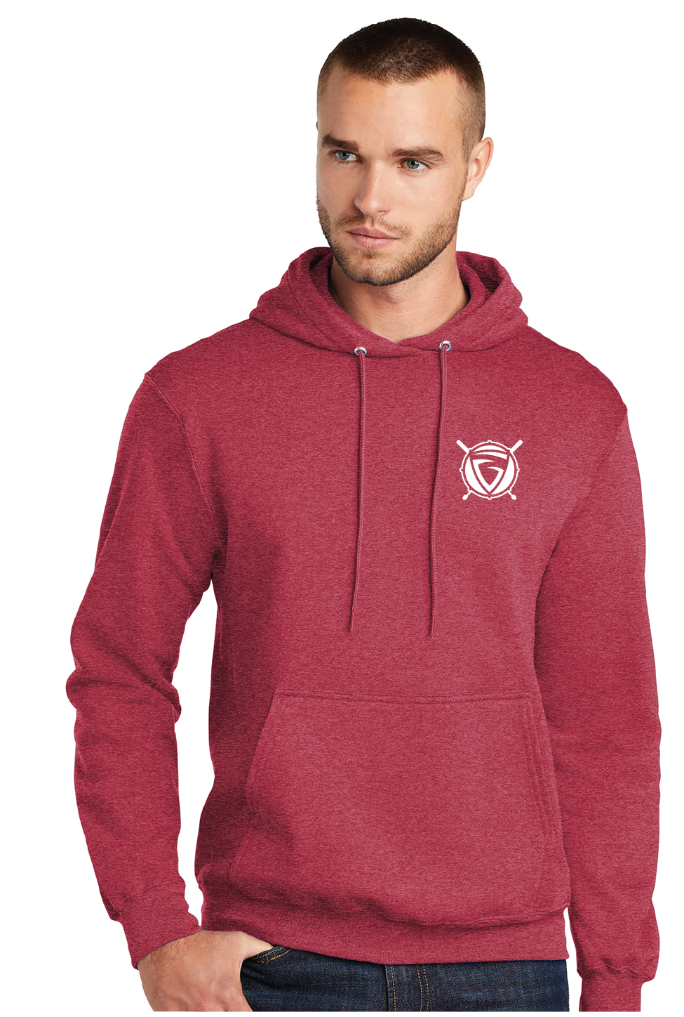 Fleece Pullover Hooded Sweatshirt / Heather Red / Grassfield High School Band / Percussion